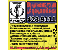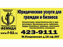 Более подробная информация об оказываемой юридической помощи и ее стоимости находится в соответствующих разделах сайта Правового центра Фемида - f-52.ru